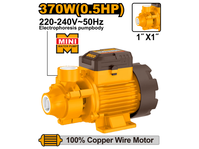 BOMBA PERIFERICA 0.5HP 370W 30L/MIN 30M INGCO VPM370268