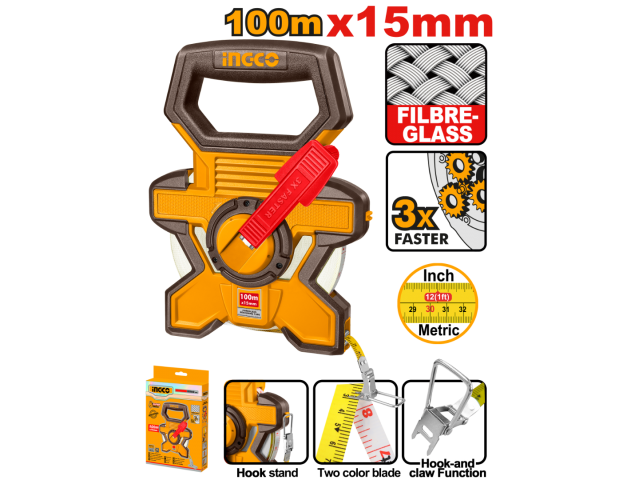 CINTA METRICA AGRIMENSOR FIBRA DE VIDRIO 100M X 15MM INGCO HFMT18100