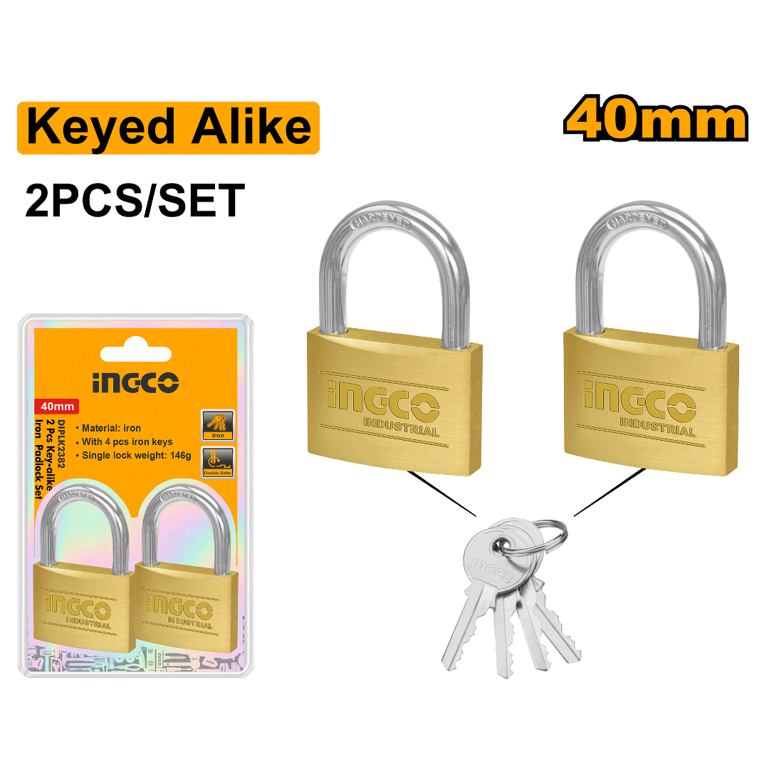 SET X 2 CANDADO BRONCE LLAVES IGUALES 40MM INGCO DBPLK2402