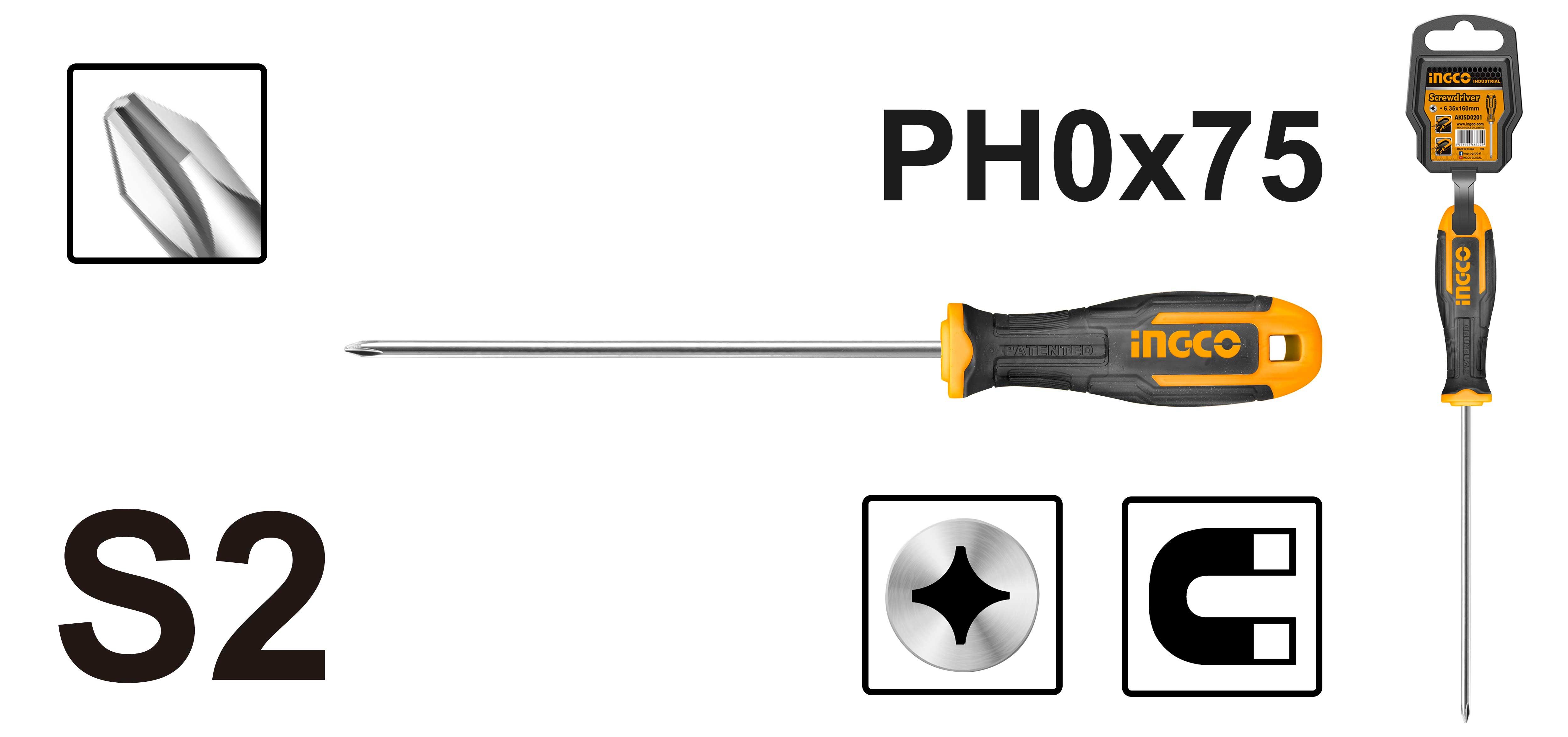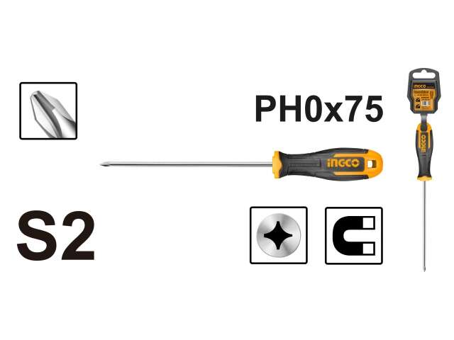 DESTORNILLADOR PHILLIPS S2,PH0 3 x75MM INGCO
