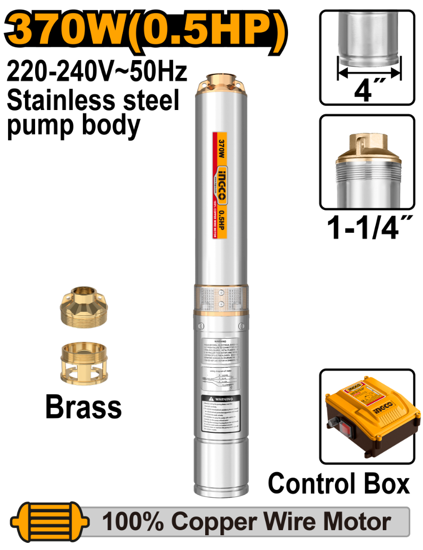 BOMBA SUMERGIBLE POZO PROFUNDO SEMISURGENTE 4" 370W 6.7M³/H CON CONTROLADOR INGCO DWP370621