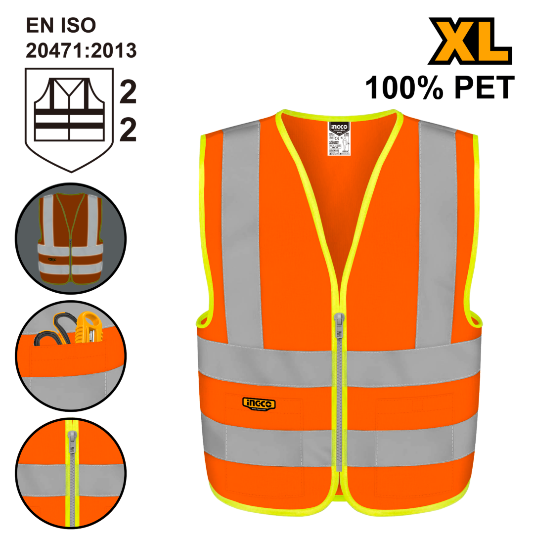 CHALECO REFLECTIVO FLUORESCENTE NARANJA TALLE XL INGCO RV82XL