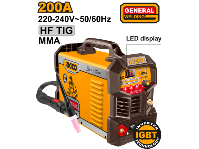 SOLDADORA INVERTER TIG/MMA 200A 220-240V LCD IGBT CON ACCESORIOS INGCO ING-TIG20058