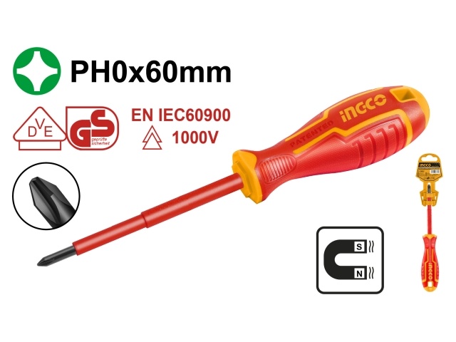 DESTORNILLADOR PHILLIPS AISLADO 1000V PH0×60MM Cr-V INGCO HISD81PH060