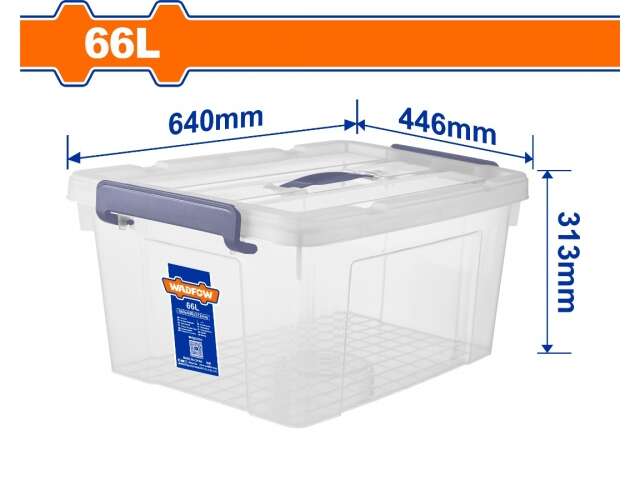 CONTENEDOR PLASTICO APILABLE TRANSPARENTE 66LT WADFOW WTB2370