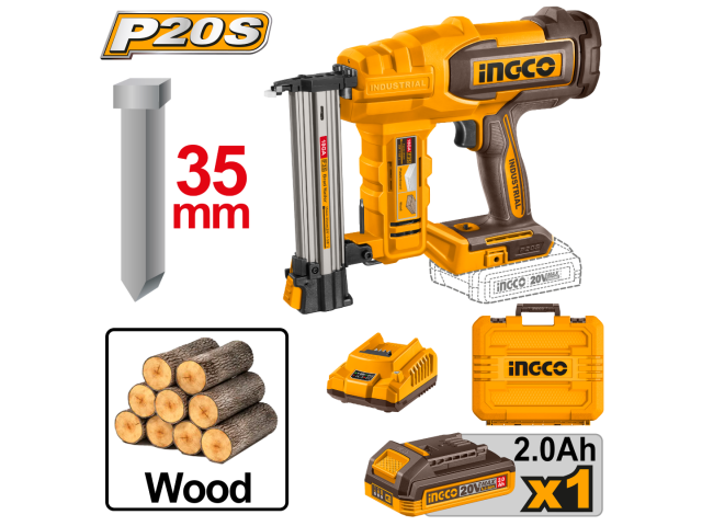CLAVADORA A BATERÍA 20V P20S 35MM C/BATERÍA, CARGADOR, VALIJA Y ACCESORIOS INGCO CBNLI2008