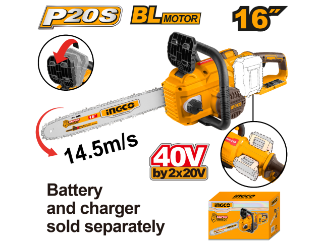 MOTOSIERRA A BATERIA 40V P20S 16" CGSLI40168 S/BAT S/CARG INGCO CGSLI40168