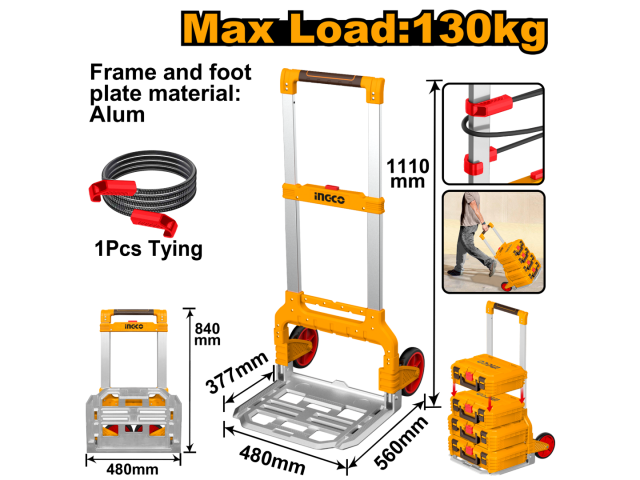 CARRO DE CARGA PLEGABLE P/ VALIJAS PLASTICAS INGCO APILABLE 130KG