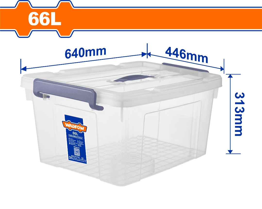 CONTENEDOR PLASTICO APILABLE TRANSPARENTE 66LT WADFOW WTB2370