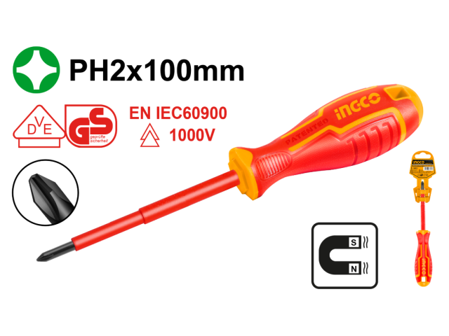 DESTORNILLADOR PHILLIPS AISLADO 1000V PH2 X 100MM Cr-V INGCO HISD81PH2100