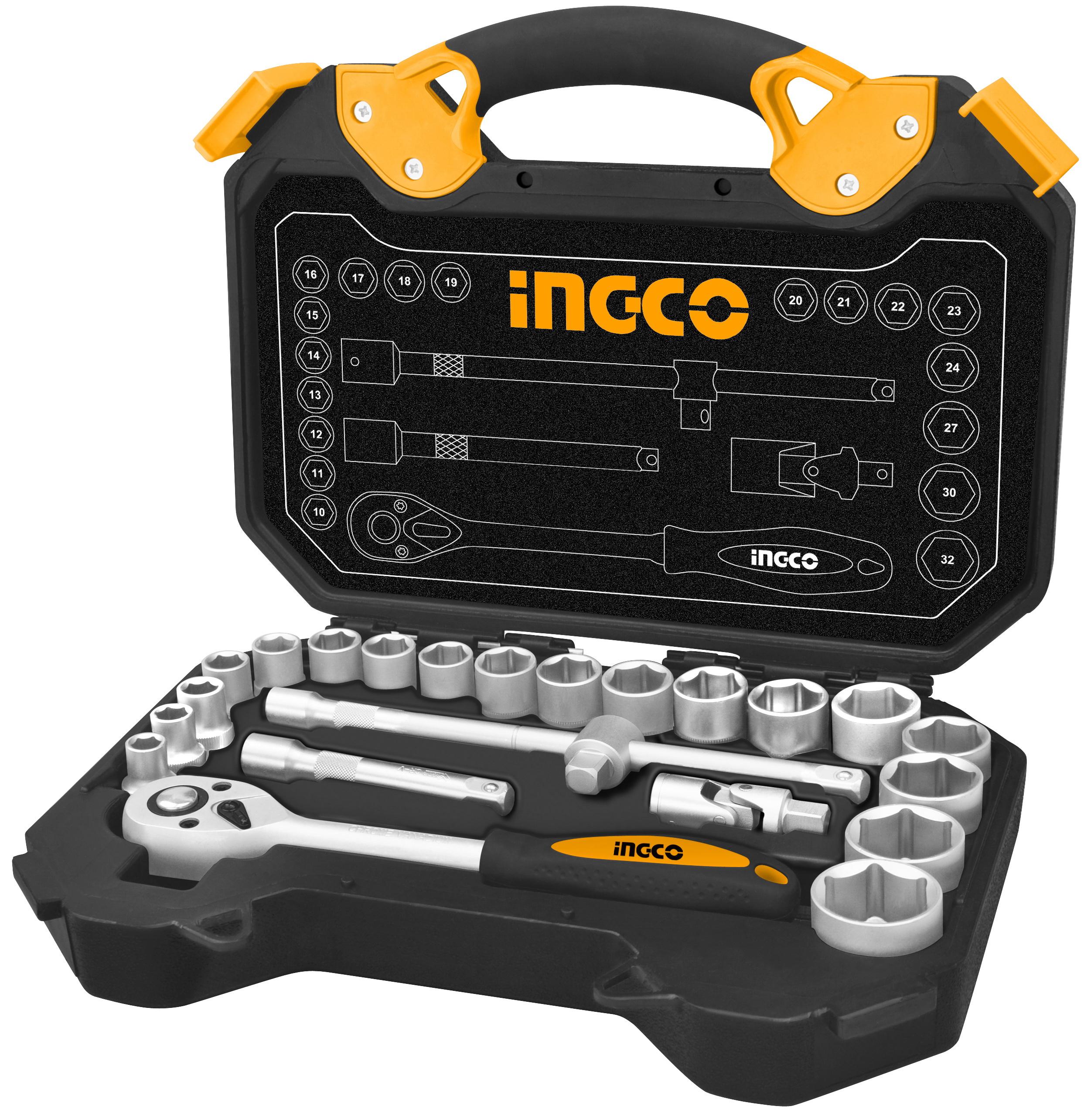 JUEGO DADOS TUBO 25 PZS LLAVE CRIQUE 1/2 METR. Y PULG. INGCO HKTS12251