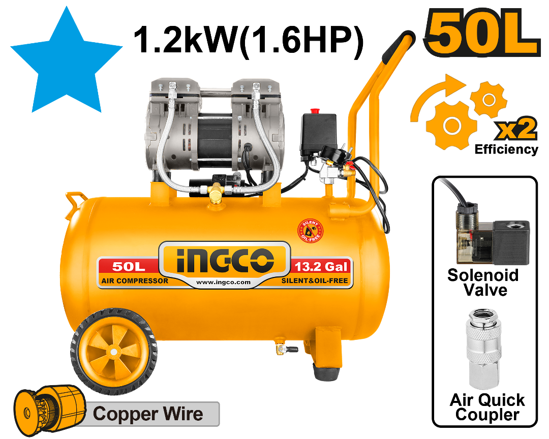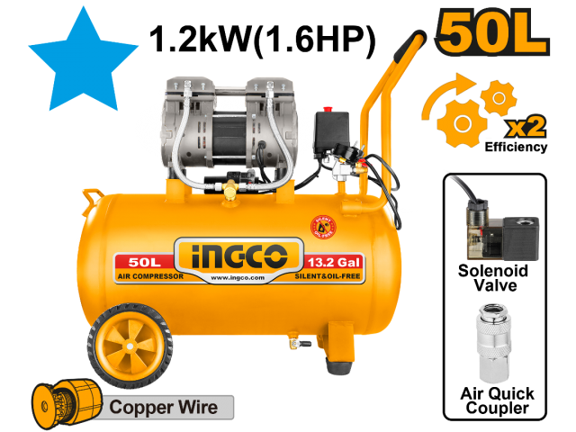 COMPRESOR 50LT 1.6HP LIBRE DE ACEITE BAJO RUIDO ACS112501 INGCO