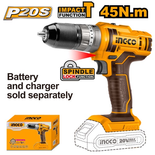 ATORNILLADOR PERCUTOR A BATERIA 20V P20S SIN BAT SIN CARGADOR CIDLI201455 INGCO