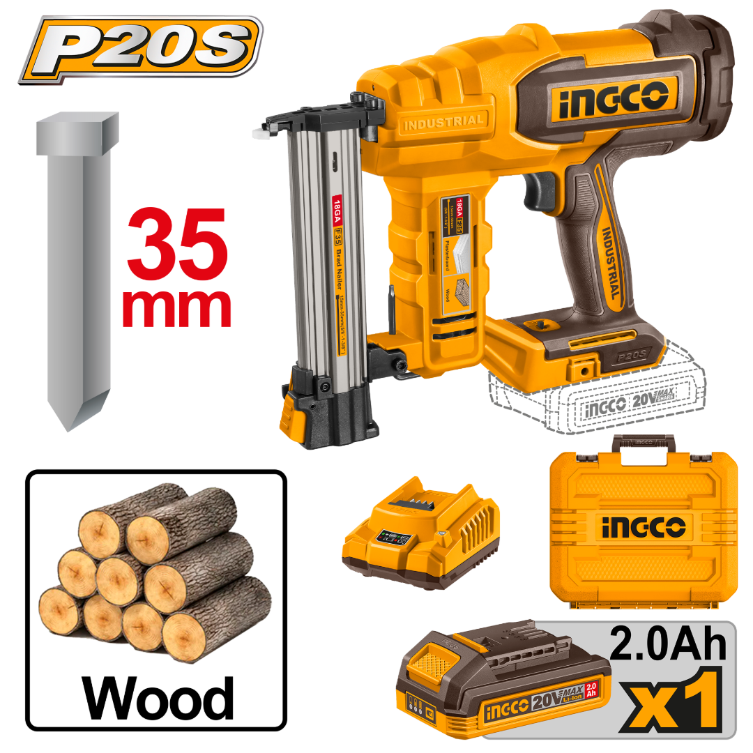 CLAVADORA A BATERÍA 20V P20S 35MM C/BATERÍA, CARGADOR, VALIJA Y ACCESORIOS INGCO CBNLI2008