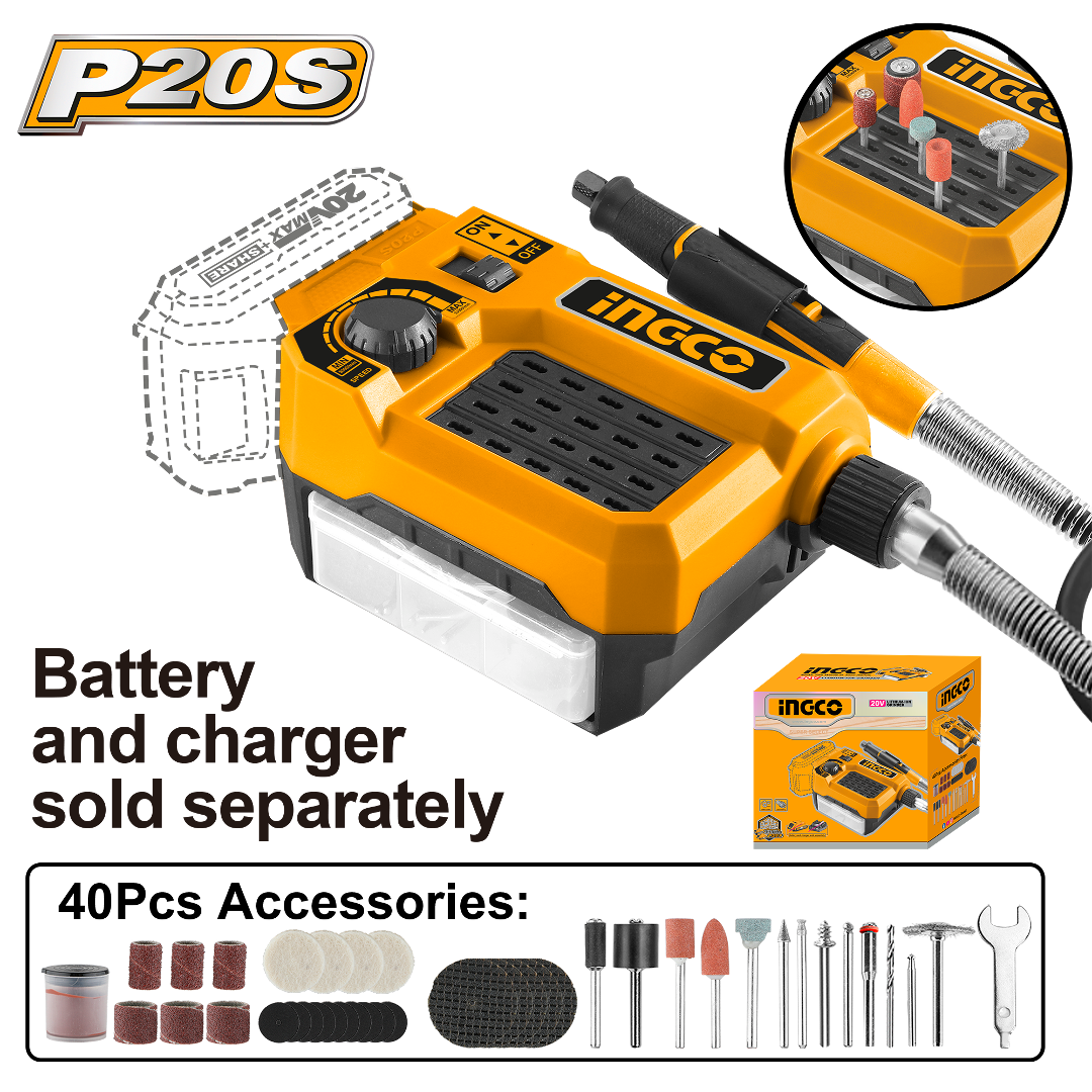 MINI TORNO A BATERIA 20V P20S INALAMBRICO C ACCESORIOS SIN BAT SIN CARG INGCO CMGLI2001