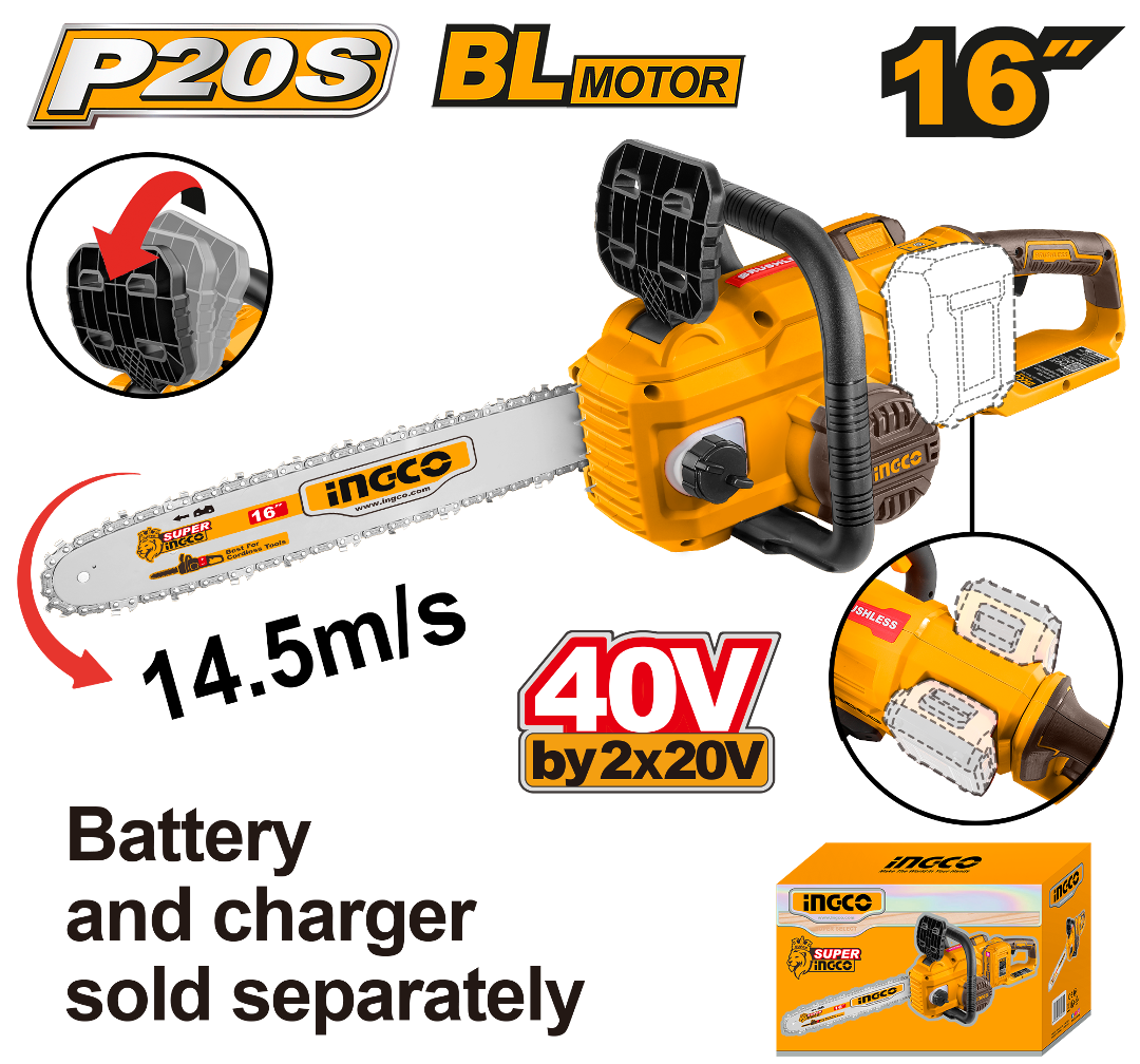MOTOSIERRA A BATERIA 40V P20S 16" CGSLI40168 S/BAT S/CARG INGCO CGSLI40168