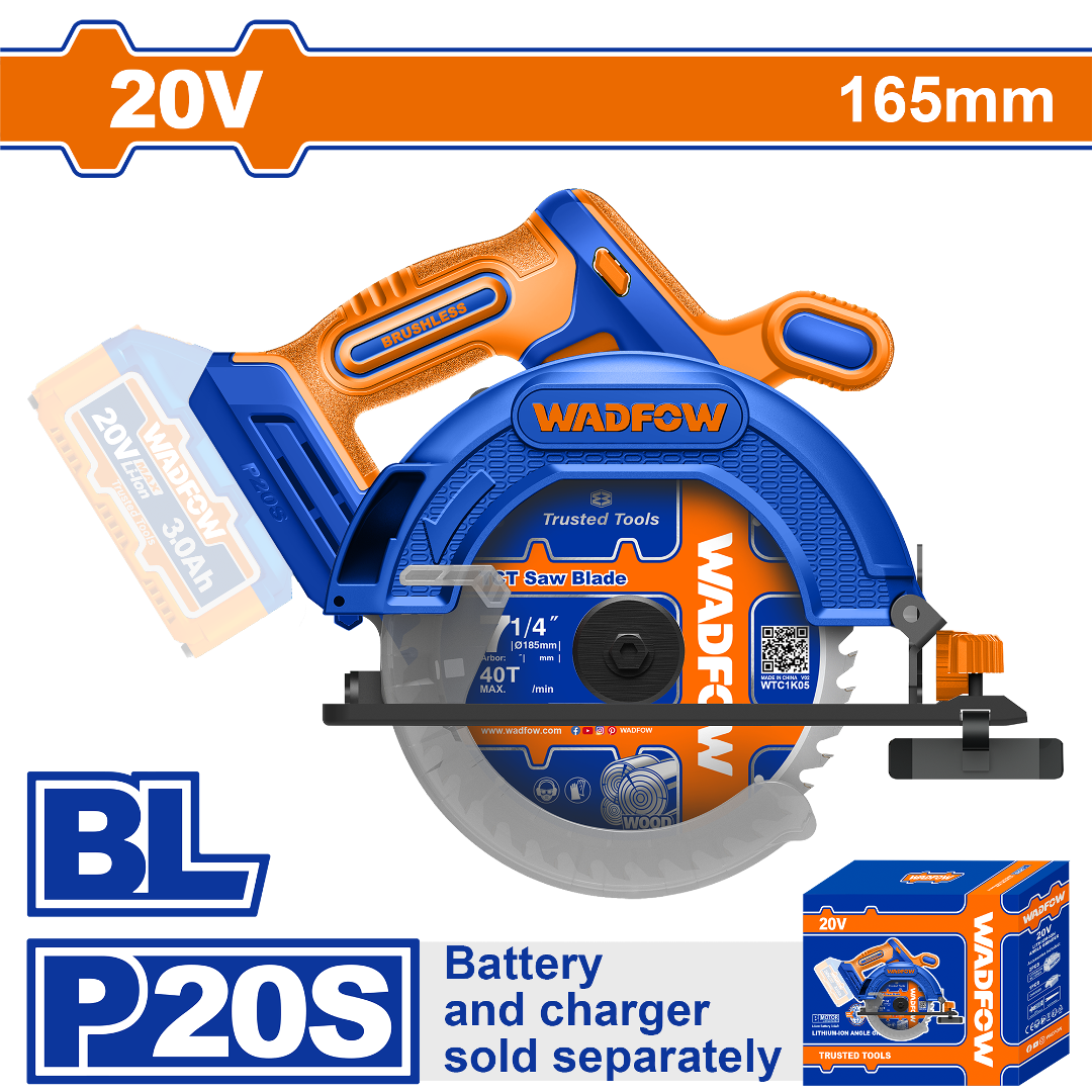 SIERRA CIRCULAR A BATERIA 20V 165MM P20S BRUSHLESS WADFOW SIN BAT SIN CARG